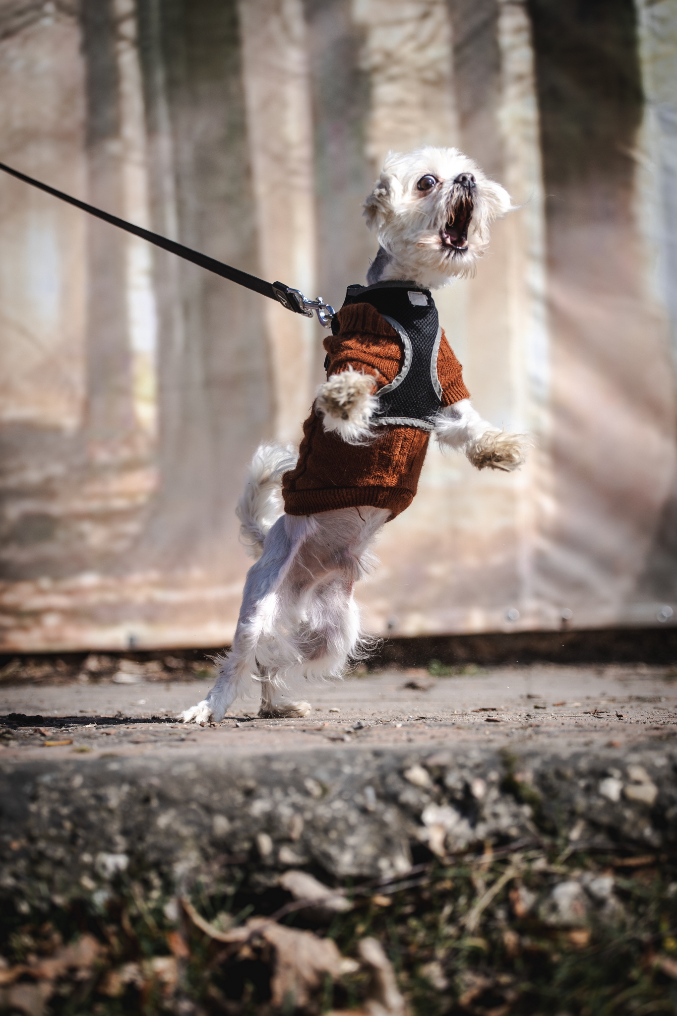 Švelniai tariant – prastai. Šiaip jis gali būti fainas, bet jei kas nepatiks, nesikuklins pasinaudoti dantimis. Na, o nuotraukose matosi jo reakcija į šalia pravažiuojančias mašinas